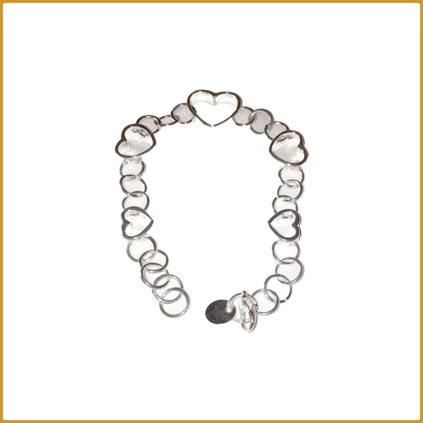 Bracelet en argent 9.25 avec motifs coeurs et cerceaux.