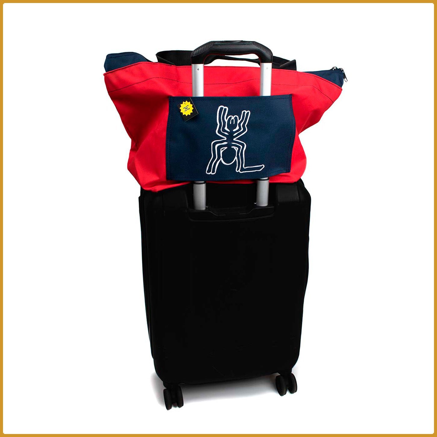 Grand sac avec motif «Nazca» . Couleurs beige, bleu, rouge et noir.