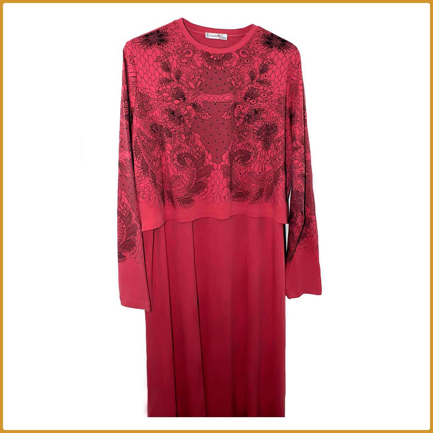 Robe en coton pima 100 % avec dessins couleur fraise.
